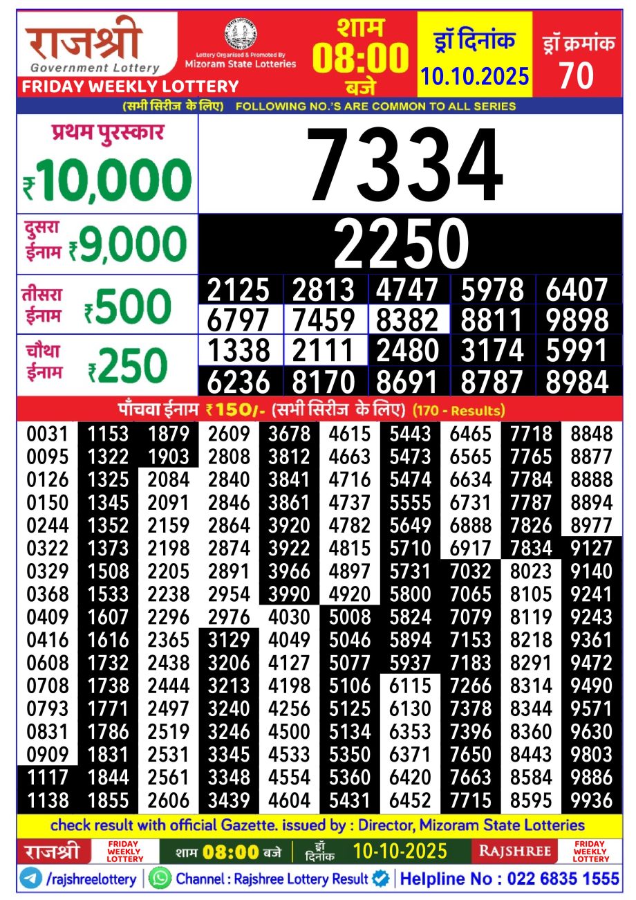 Rajshree Friday Weekly Lottery 8pm Result 10/10/2025 October 10, 2025 Leave a Comment on Rajshree Friday Weekly Lottery 8pm Result 10/10/2025